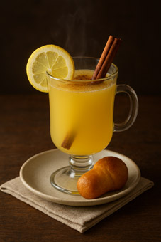 | Limoncello Punsch mit Baba, Zimt und Zitrone | Mango Matcha als Heißgetränk |