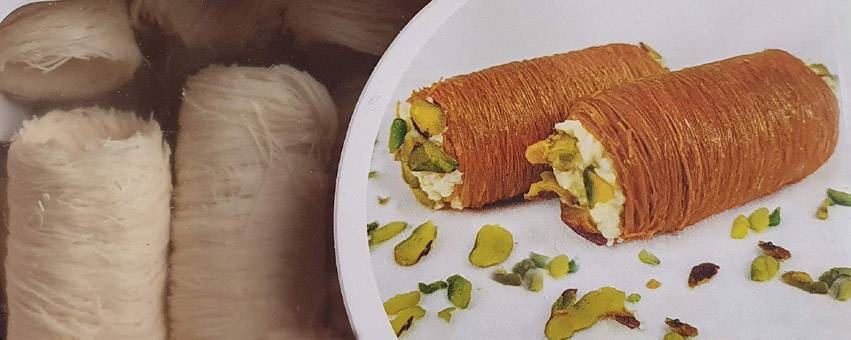 | Engelshaar in Rollenform, Kadayif, Kataifi, Kadaif, Kunafa roasted. Zum Füllen mit Pistaziencrem, Nougatcrem, anderen Cremen |